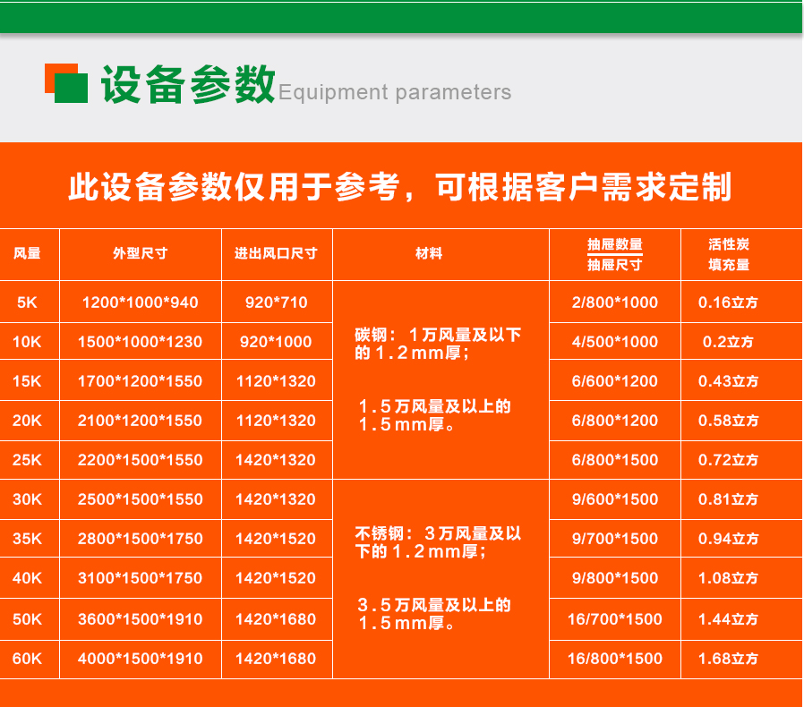 活性炭吸附裝置整體可采用PP、不銹鋼、鐵等材料制成,采用抽屜式的加炭方式,操作方便,占地面積小,安裝好即可使用,無需人工看管,做好清洗與換炭工作即可。