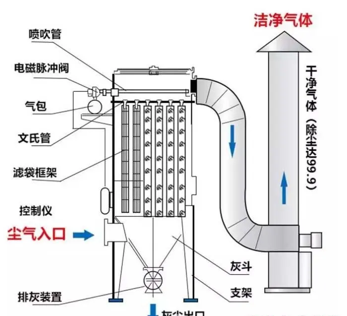 含塵氣體由風(fēng)機(jī)通過吸塵管吸入箱體,進(jìn)入濾袋過濾,粉塵顆粒被濾袋阻留在表面,經(jīng)過過濾的凈化氣體由出風(fēng)口排出,可直接排放在室內(nèi)循環(huán)使用,也可根據(jù)需要排出室外。整個(gè)除塵過濾是一個(gè)重力,慣性力,碰撞,靜電吸附,篩濾等綜合效應(yīng)的結(jié)果。除塵器連續(xù)工作一段時(shí)間后,濾袋表面的粉塵不斷增加,繼而進(jìn)行清灰,粉塵抖落在集塵器(抽屜)中,再由人工進(jìn)行處理 。