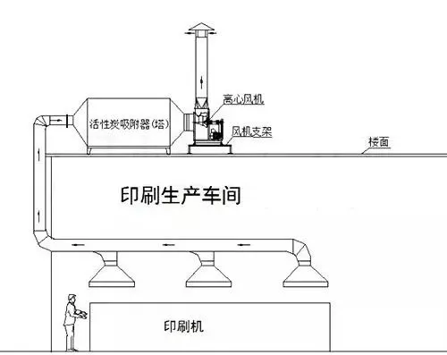 有機(jī)廢氣氣體由風(fēng)機(jī)提供動(dòng)力,正壓或負(fù)壓進(jìn)入活性炭廢氣吸附設(shè)備,廢氣與具有大表面的多孔性的活性炭接觸 ,廢氣中的污染物被吸附,使其與氣體混合物分離而起到凈化作用,凈化氣體高空達(dá)標(biāo)排放。